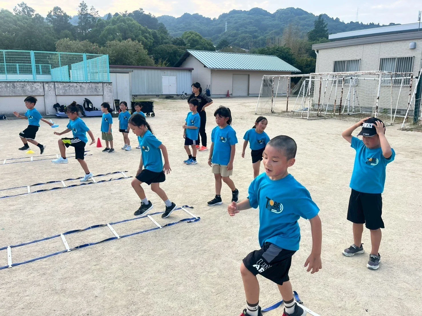 キッズクラス参加者は11名。活動内容は、ジョギング、ストレッチ、鬼ごっこ(複数種類)、ラダー、リレー(バトン練習)でした。